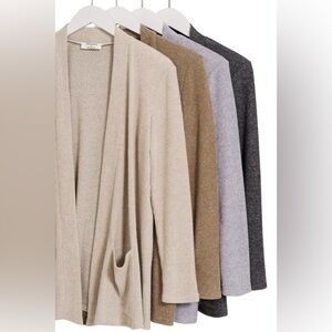 NWT Zenana Heather Ribbed Open Front Cardigan Sweater | Sz X-Large | Mocha Brown
