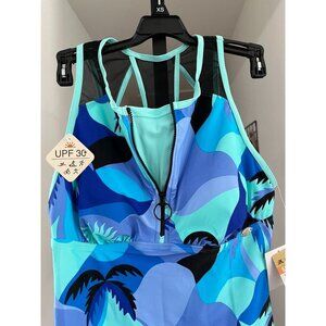 NWT Zeroxposur Womens UPF 30+ Tankini Top XS Eclipse Tropical Print 4-Way Stretc