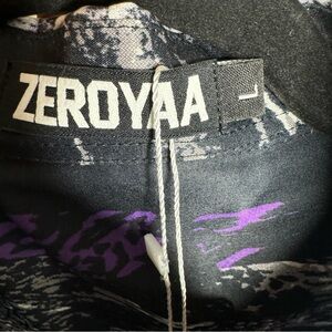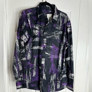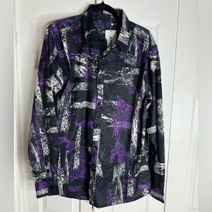 NWT Zeroyaa Shirt Mens L Button Up Black Silver Purple Geometric Long Sleeve