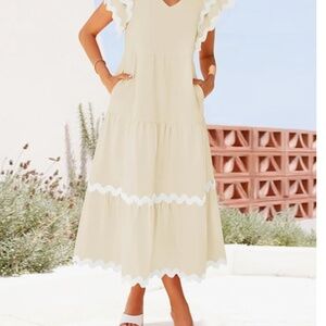 Designed with a V neck and flutter short sleeves, the ruffle tiered design adds volume and movement to create a flowy and breezy silhouette, with lining of the upper body but not lower body, not be see through, don't worry able the wardrobe malfunction, great for those hot summer days.