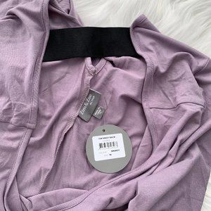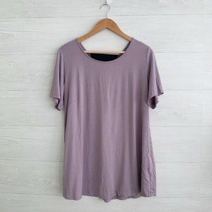 NWT Zim & Zoe Active - Smoky Purple Gray Top Knot back SS swing tee shirt, 14
