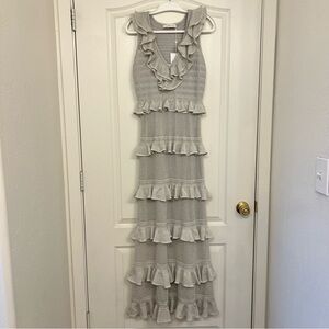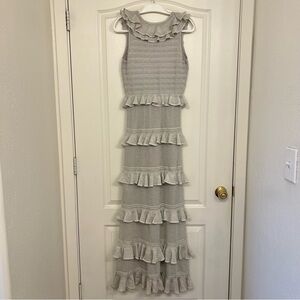 NWT Zimmermann Crush Frilled Sleeveless Sweater Midi V Neck Dress Silver