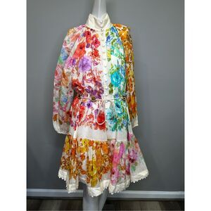 NWT Zimmermann Floral Tiered Long Sleeve Raie Lantern Mini Dress Size 2/US8 $795