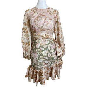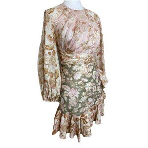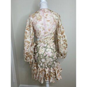 NWT Zimmermann Lyre Wrap Billow Mini Dress US 6 Linen Ruffle Long Sleeve $795