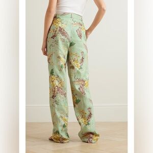 NWT Zimmermann Matchmaker Linen Straight Trouser Pants Mint Tropical Floral