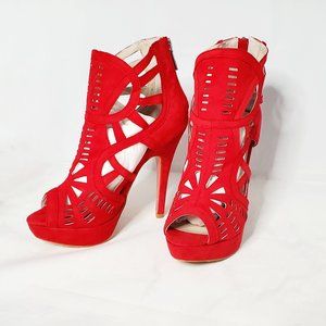 NWT Zip Back Rytner Red Heels by JustFab, Size 6 US, Open-toe