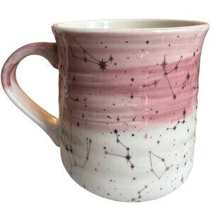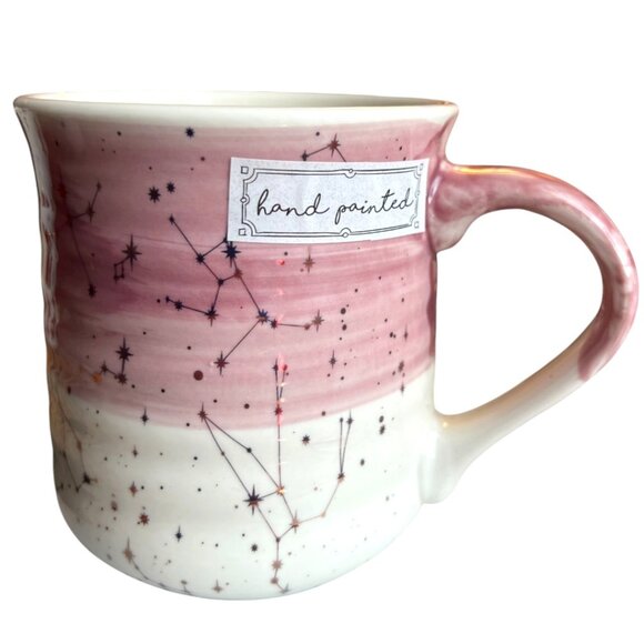 NWT Zodiac Celestial Mug Metallic Gold Stars Pink & White Hand-Painted 16-18oz
