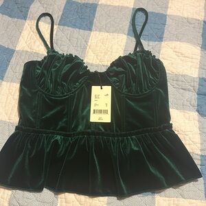 NWT a loves a "EDEN" Green Velvet Bustier Spaghetti Strap Ruffle Top,