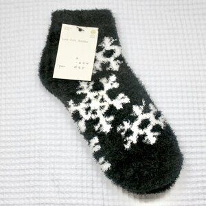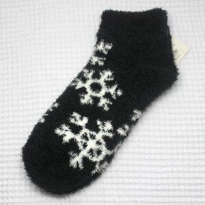 NWT a new day Black Snowflake Low-Cut Fuzzy Cozy Sleepover Winter Socks 4-10