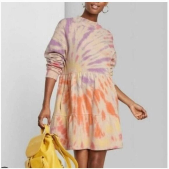 NWT a new day Fleece sweatshirt tiered dress tie dye size small