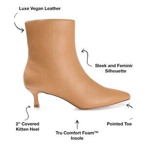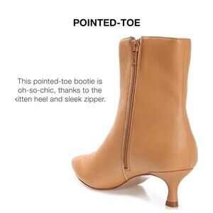 With a pointed toe and inside zipper, this kitten-heeled bootie is both sophisticated and chic. ♥ Upper Material: Vegan Leather ♥ Lining: Man-Made ♥ Toe Style: Pointed ♥ Heel Height/Type: 2- in Kitten ♥ Closure Type: Zipper ♥ Shoe Width: Medium & Wide ♥ Footbed: 4 mm Tru Comfort Foam ♥ All measurements are approximate