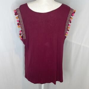 NWT a new day maroon Pom Pom sleeve t shirt