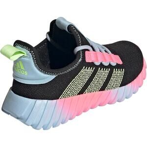 The adidas Kaptir Flow Sneaker in Black/Yellow/Clear Sky (Big Kid US 6, Unisex) is a sleek, sporty slip-on built for easy everyday wear. It boasts a snug, sock-like knit upper, Cloudfoam-cushioned midsole for lightweight comfort, and a durable rubber outsole with solid traction. The pull tab and elastic structure let kids slip them on effortlessly—perfect for school, play, or casual outings