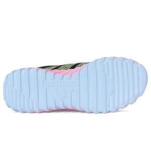 The adidas Kaptir Flow Sneaker for little kids combines sporty style with all-day comfort. Featuring a breathable mesh upper, cushioned Cloudfoam midsole, and bold black, yellow, and clear sky colorway, these sneakers offer lightweight support and a snug fit—perfect for active young feet.