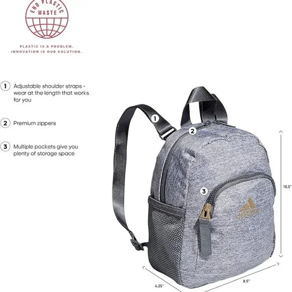 Sporty and compact, this mini backpack makes it easy to pack up and go. It's got multiple zip pockets so you can keep your essentials organized. Carry it on your shoulders or by the top loop, either way, the adidas Badge of Sport on the front lets the world know what you love.