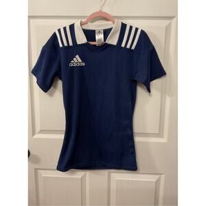 NWT adidas Mens Performance Climalite 3 Stripes Fitted Blue/White Rugby Jersey,M
