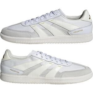 Channel iconic indoor soccer heritage with the adidas Predator Freestyle sneaker. Featuring clean white and off-white tones, a gold metallic heel tab, and grippy non-marking indoor sole, these stylish trainers offer classic flair for courts or everyday wear. Men’s US size 8 (unisex fit).