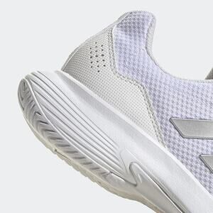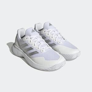 The adidas Women's GameCourt 2 Sneaker in White/Silver Metallic (Size 11) is a versatile tennis shoe designed for both performance and comfort. Featuring a breathable mesh upper and a padded heel collar, it ensures ventilation and support during play. The EVA midsole provides lightweight cushioning, while the durable Adiwear outsole offers excellent traction on various court surfaces. Additionally, this model incorporates at least 20% recycled materials, aligning with adidas's commitment to sustainability.
