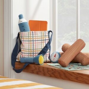 Bring excitement to your kid's playtime with this Adventure Play Set from Pillowfort™. This throw pillow set includes three faux firewood logs, one torch, one water bottle, one map, one compass and one tote bag, making it a great pick for role plays and other fun activities. Made from canvas fabric with soft filling and showcasing bright hues, these cute set of little throw pillows bring cute charm to their room, while giving them fun options for playing