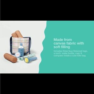 -Includes 3 faux firewood logs, 1 torch, 1 water bottle, 1 map, 1 compass and 1 tote bag