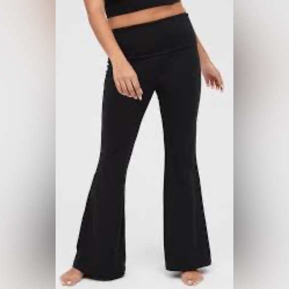 NWT aerie high rise, super flare black leggings with fold over waistband; size L