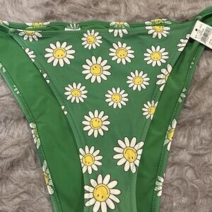 NWT aerie cheekiest green, yellow and white smiley face flower swimsuit bottoms