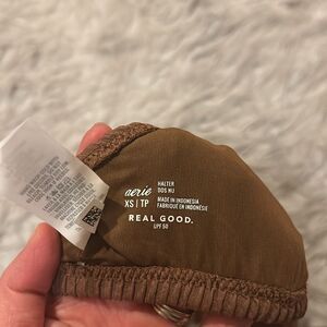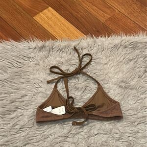 NWT aerie halter brown ribbed swimsuit top size xs, missing padding inside swimsuit top as shown in picture