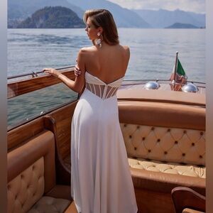 This elegant white strapless dress is perfect for any special occasion. Its sophisticated design and flattering fit make it a must-have in your wardrobe.