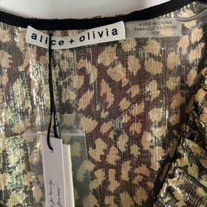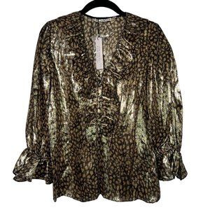 NWT alice + olivia SILK Blend Leopard Print V neck Ruffle Trim Blouse SMALL
