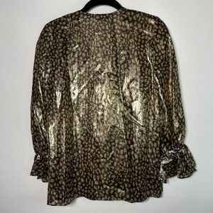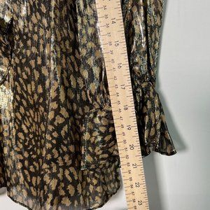 NWT alice + olivia SILK Blend Leopard Print V neck Ruffle Trim Long Bell Sleeve Size S