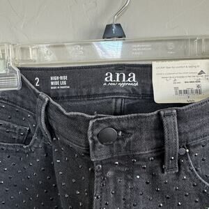 NWT a.n.a. Embellished High Rise Wide Leg Jeans Woman Sz 2 Black Onyx Rhinestone
