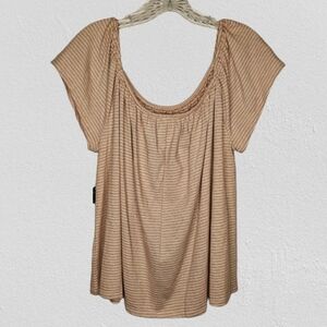 NWT a.n.a. Striped Convertible Cream Burnt Orange Flutter Sleeve Top XXL