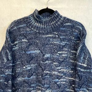 NWT a.n.a. Women’s Sweater XL Mock Neck Blue Sapphire Cable Knit Long Sleeve NEW