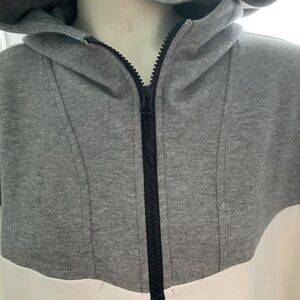 Men’s MTA sport white long sleeve jacket size L. New with tags,made from 40% recyclable materials. No damage.White and gray with hood.Zipper closure that works.Could work for female also. Sleeves are 30 in.from shoulder to cuff.Pit to pit 22 in. Top to bottom 30 in. The fabric is soft and a medium weight that can work for all/ most weather seasons.Fast ship!