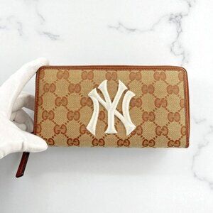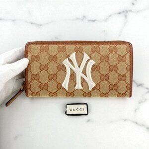 NWT authentic Gucci New York Yankees patch™ Cluthch In brown wallet