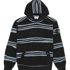 NWT authenticated, Supreme Stone Island Warp Stripe Hooded Sweatshirt Black XL