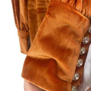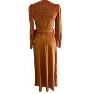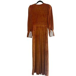 NWT balloon sleeve apricot crush orange velvet maxi wrap dress w/ rhinestones