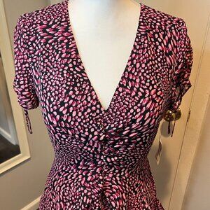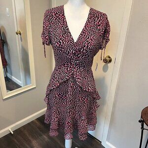 NWT bar III Pink/Fuschia/Black Printed Ruffled Mini Dress, Size 6