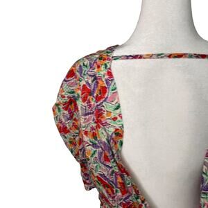 New With Tags ba&sh Amael colorful floral open back top. Orange, Red, Pink, Purple, greens. Slightly puffy sleeves and buttons at the cuffs.