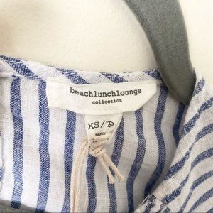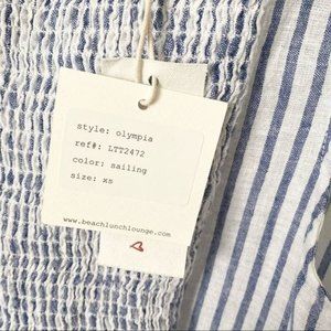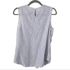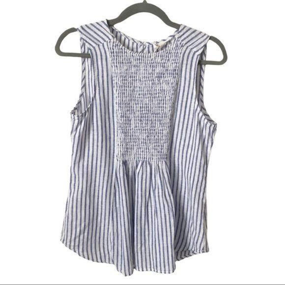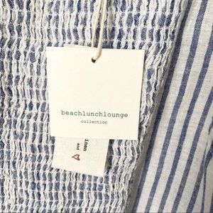 NWT beachlunchlounge Blue/White Striped Linen Blend Smocked Tank Top
