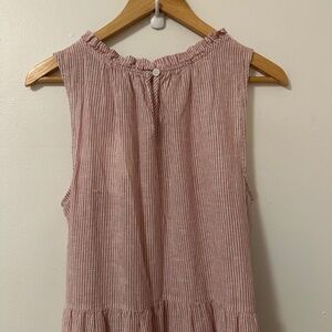 NWT beachlunchlounge Red and White Stripe Ruffle Cotton Linen Dress | Medium