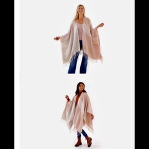 Stay warm and stylish in this new with tag scarf/ cardigan crossover. It’s crafted with the exclusive fabric by SOIA & KYO.