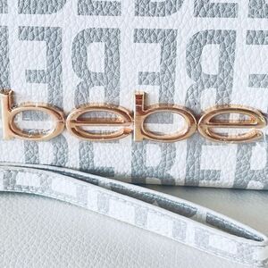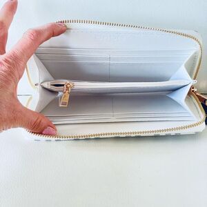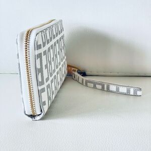 NWT bebe Gorgeous White Gray Gold Hardware Signature Zip All Around Moana Wallet
