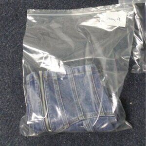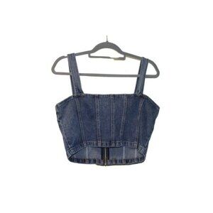 New with Tags bebe Multi Seam Zip Front Denim Bustier Top Size Large MSRP $98