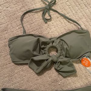 Two piece olive color NWT halter straps are removable. Tie back, ring detail with tie