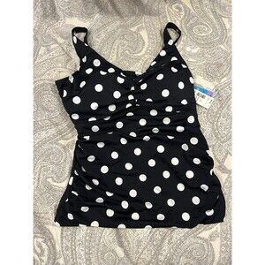 NWT Swim solutions tummy control black and white dot tankini top. Size 16