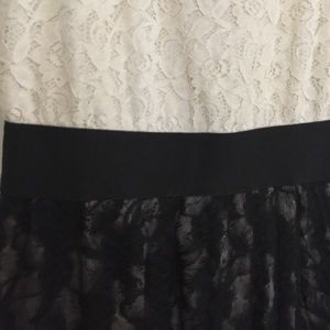 Lined throughout, this incredible black and white lace top is a perfect wardrobe staple. Dress it up or down! Waistband makes it figure flattering.