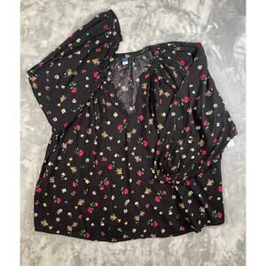NWT black long sleeve micro floral top Old Navy Plus 3X peasant casual cottage