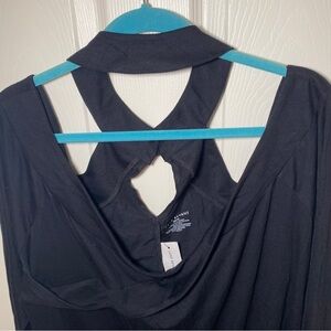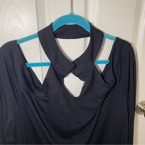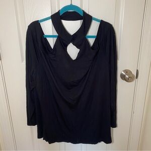 Long sleeved black top from Lane Bryant. Off the shoulder with reverse halter top design. Diamond shape cut out on back. Size 30/32. New with tags.