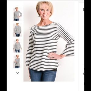 Brand new with tags, striped top with cute bell sleeves. No flaws. Between armpits 21”, length 25” center back, sleeves 21” from shoulder. Pet free, nonsmoking home. I ship same or next day.